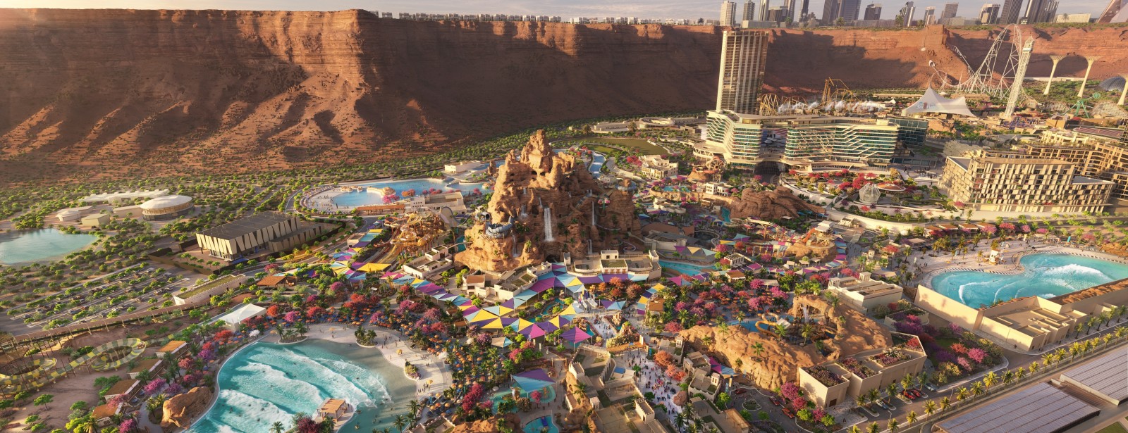 If you're focused only on the headline rides, you can cover them in 4 to 5 hours by arriving at opening. Families with younger kids should budget the full 8 hours โ the kids' zones, lazy river, and meal breaks add up quickly. If you've booked a cabana, treat it as a base and pace yourself; coming back another day is a real option, especially if you're combining the visit with Six Flags Qiddiya City next door.